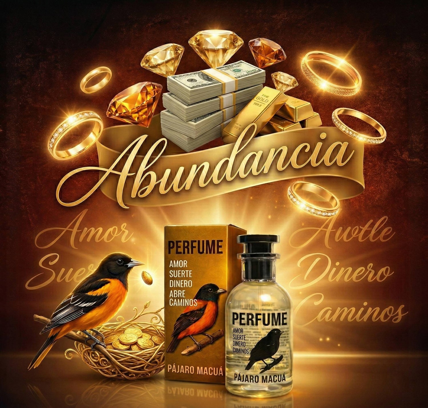 A veces, el talento y el trabajo duro necesitan un empujón de buena energía. Inspirada en las tradiciones místicas más antiguas, la Loción Pájaro Macuá no es solo un perfume con un aroma delicioso y relajante; es un ancla emocional diseñada para elevar tu confianza y ayudarte a atraer la prosperidad a tu vida diaria.
